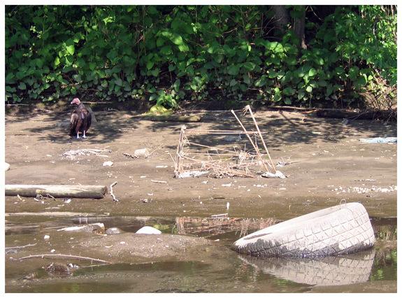 Not everyone appreciates the beauty of the river. This is apparent in the abundance of trash that floats in the water and litters the riverbank. Practically anything that can be thrown away can be found along the Ohio River. Besides the multitude of cans and bottles, you can see furniture, automobile parts, sporting equipment, household appliances, toys and much, much more—all thrown into the river when they have outlived their usefulness.