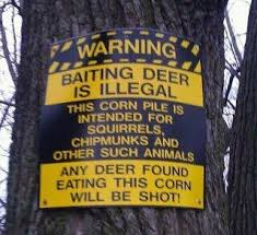 baiting deerI had to laugh when I saw the sign to the right. It serves to illustrate how we might not always have the purist of motives.